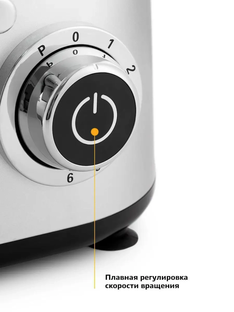 Миксер позволяет плавно регулировать скорость от минимума до максимума. При включении миксера скорость вращения увеличивается постепенно, чтобы предотвратить разбрызгивание ингредиентов. Прибор имеет 6 скоростей и импульсный режим.