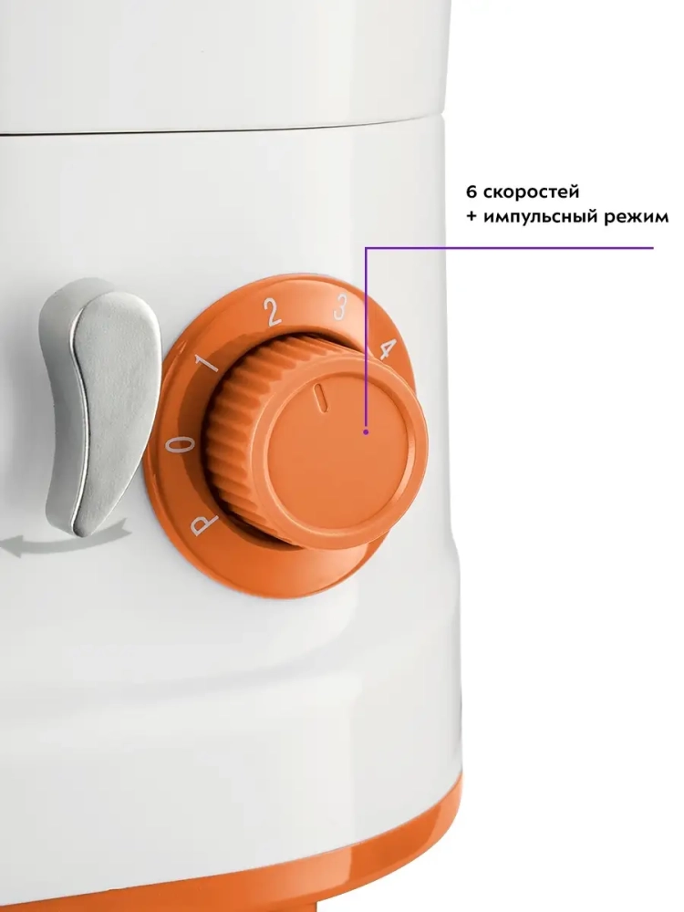 Миксер позволяет легко регулировать скорость от минимума до максимума. 6 скоростей работы позволяют выбирать более подходящий вариант смешивания и взбивания ингредиентов для приготовления разных блюд.