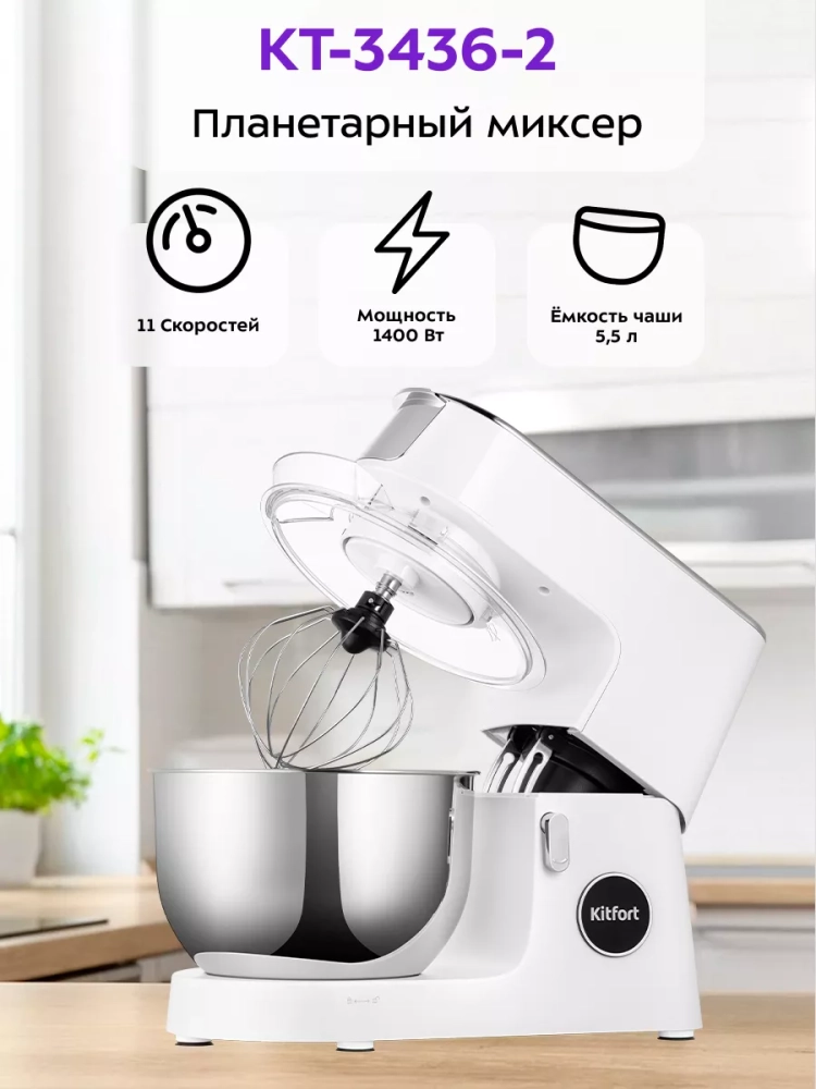Планетарный миксер Kitfort КТ-3436 поможет вам смешать ингредиенты, взбить яичный белок или сливки, приготовить картофельное пюре, соус, крем, мусс, замесить жидкое тесто для блинов и крутое — для пельменей и пирогов. В комплекте есть три насадки.