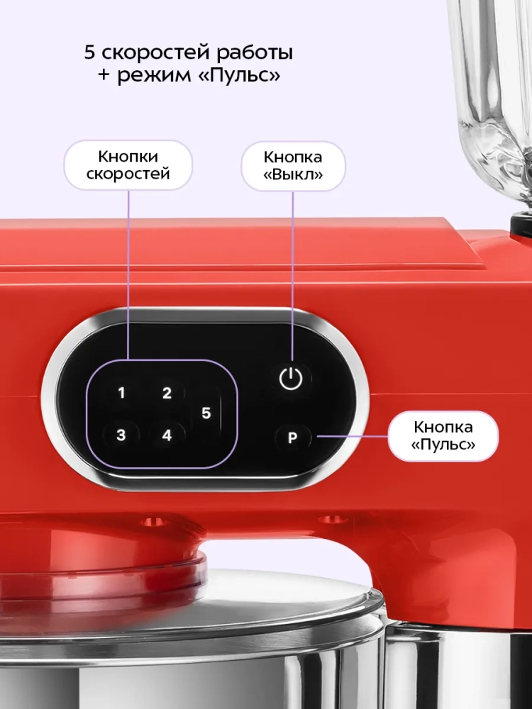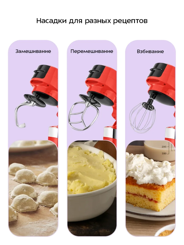 Миксер может работать в полностью автоматическом режиме. Вам достаточно только положить ингредиенты, надеть насадку и выбрать нужную скорость работы.