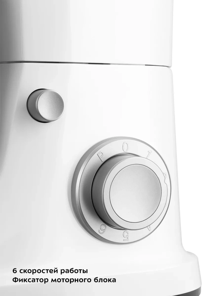 Скорость работы регулируется в процессе приготовления. У прибора 6 скоростей работы и импульсный режим, который позволяет замешивать ингредиенты на максимальной скорости с частыми паузами.