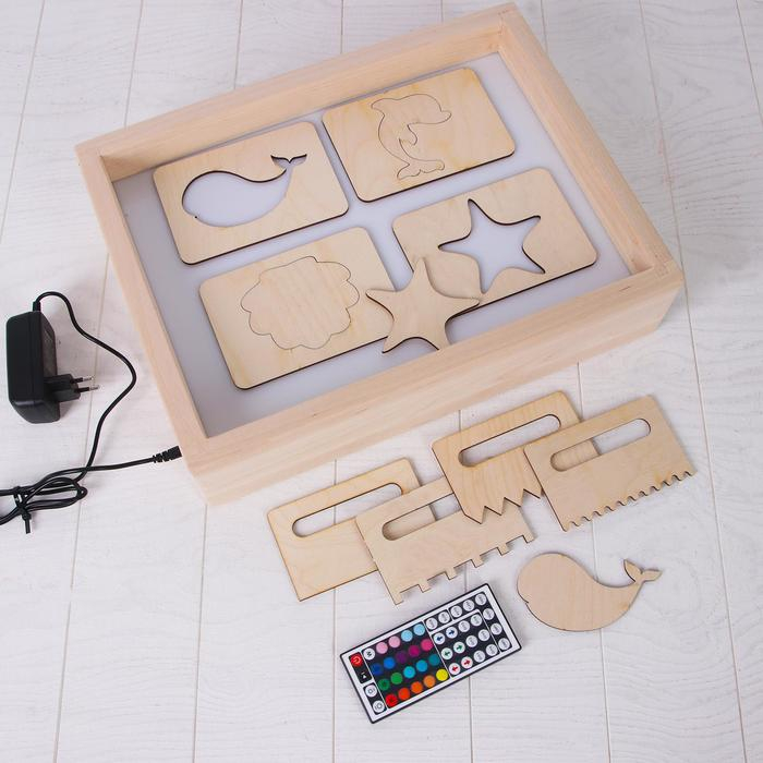 Планшет для рисования песком с цветной подсветкой, 30 × 40 см + гребень и трафарет