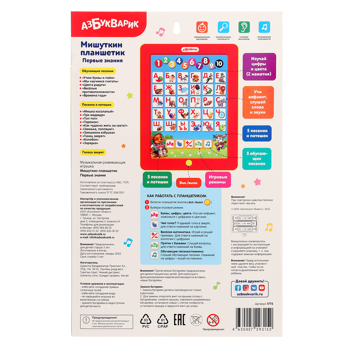 Планшетик «Первые знания. Мишуткин планшетик»