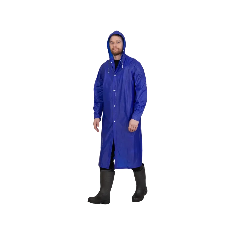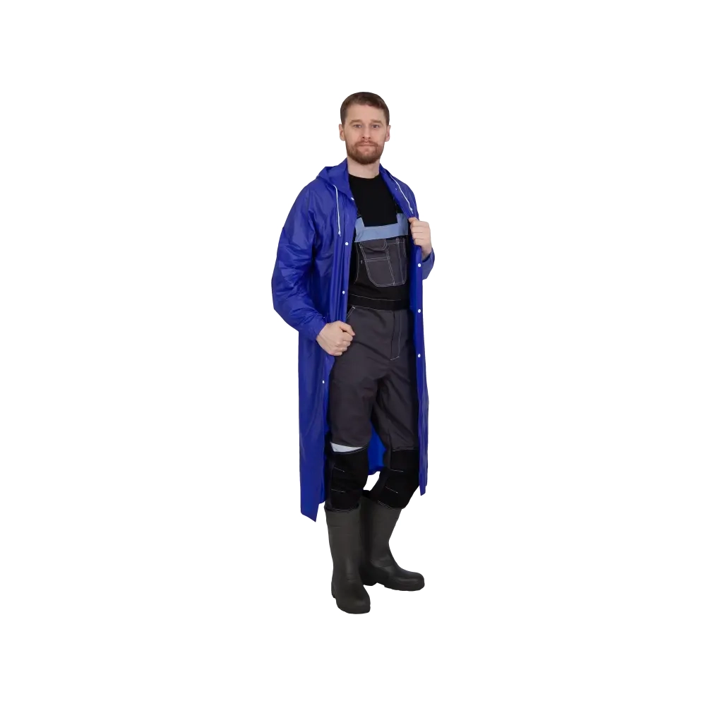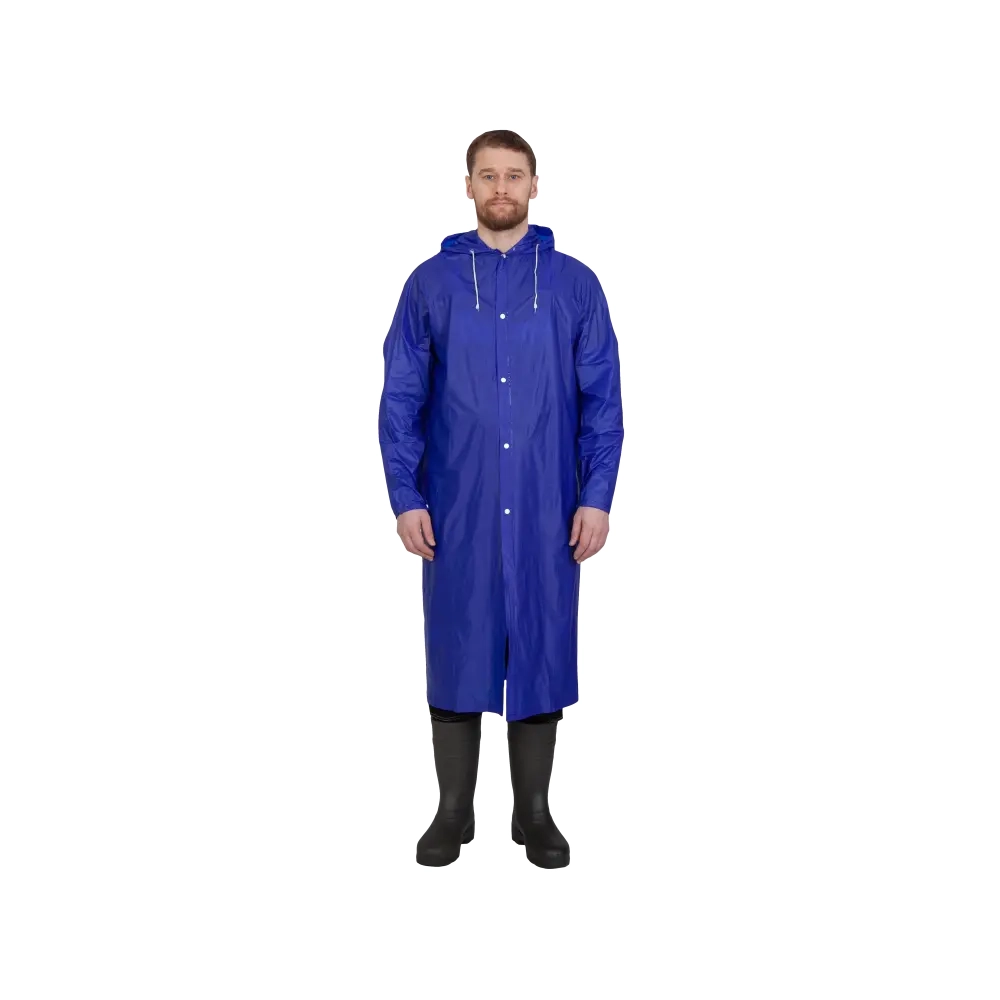 Плащ-дождевик №4 влагозащитный из ПВХ синий, с капюшоном, для мужчин и женщин (XL)