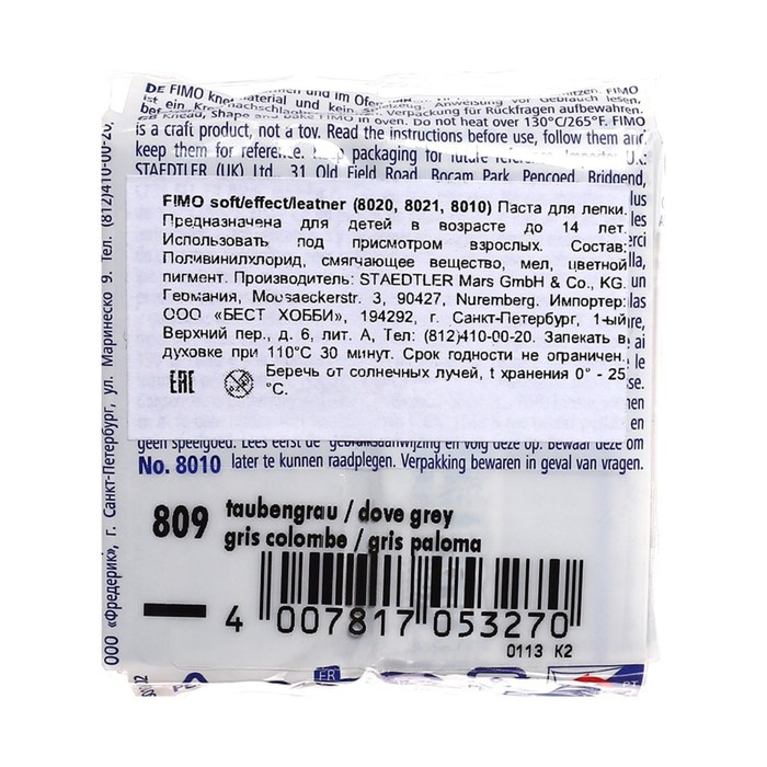 Полимерная глина FIMO подходит для начинающих мастеров и професиональных художников.ОсобенностиМасса мягкая, поэтому вы легко придадите ей нужную форму.Цвета можно смешивать для получения необходимых оттенков, которые сохранятся после обжига.После запекания изделия становятся прочными и долговечными.Упаковка легко открывается без использования ножа. Если вы не полностью израсходовали блок, то остатки можно завернуть в упаковку — так глина лучше сохранится.Термическая обработка. Готовое изделие поместите внутрь духовки на тарелке, стекле или фольге. Температура обжига не должна пpeвышaть 130 °С.Пластика рекомендована для детей старше 8 лет.