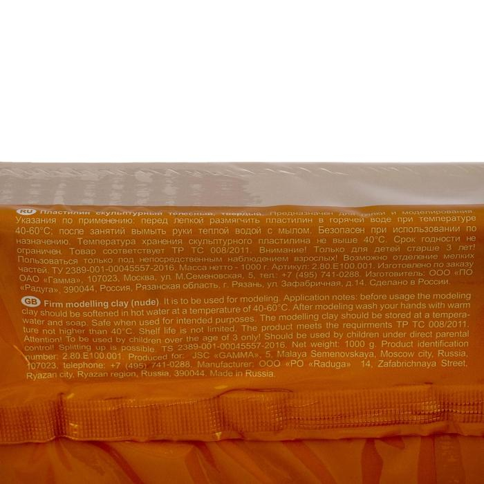 Пластилин скульптурный телесный, твёрдый, 1000 г, "Гамма"