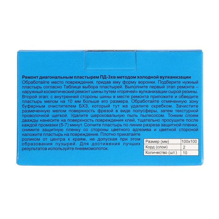 Пластырь резинокордный ПД-3 х.в, 100х100 мм, 2 слоя корда, набор 10 шт
