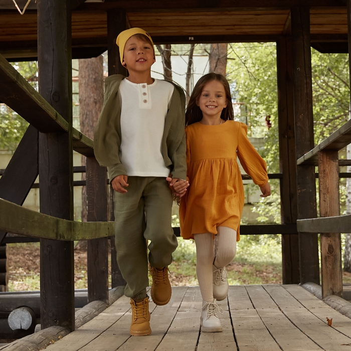 Платье детское с длинным рукавом KAFTAN "Муслин", размер 34 (122-128 см) цвет горчичный