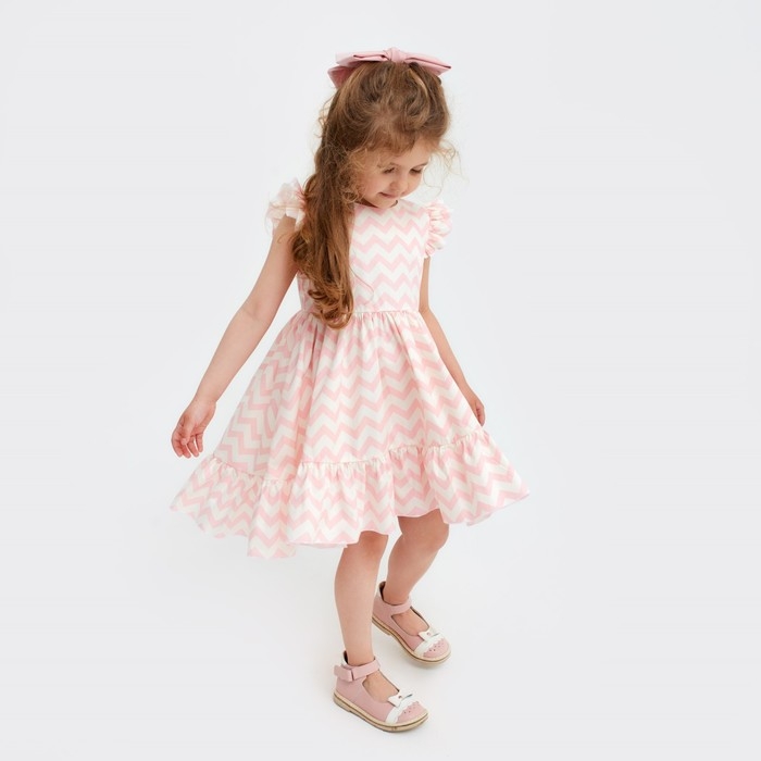 Платье для девочки KAFTAN «Зигзаг», размер 34 (122-128), цвет белый/розовый