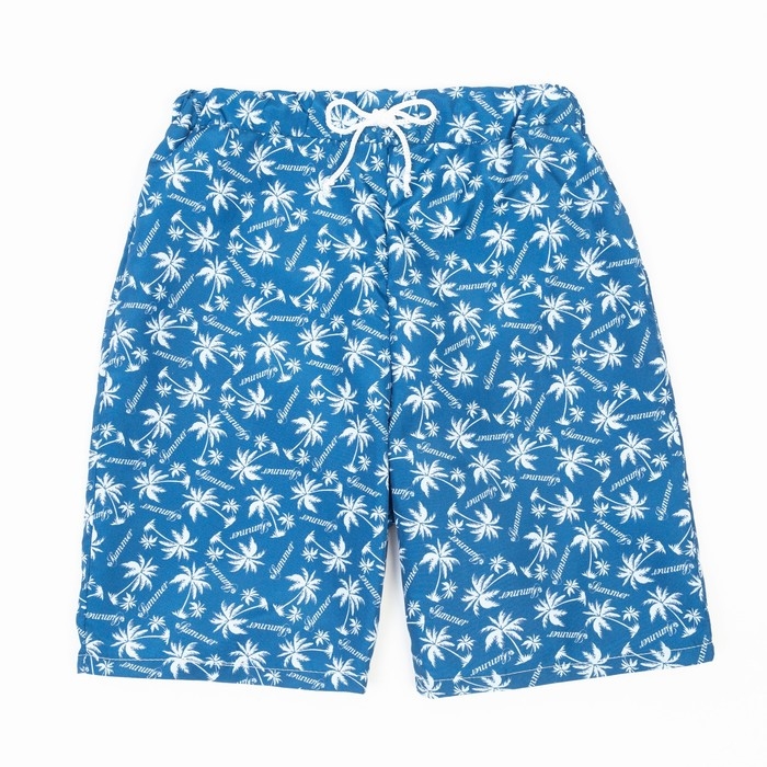 Плавки-шорты для мальчика, цвет тёмно-синий/пальмы, рост 128 см