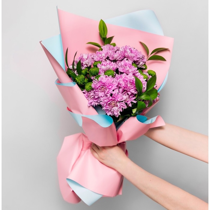 Плёнка для цветов упаковочная пудровая двухсторонняя «Розовый+голубой», 50 мкм, 0.5 х 9 м