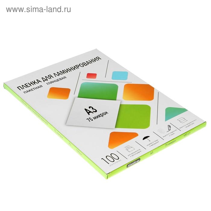 Пленка для ламинирования A3 303х426 мм, 75 мкм, 100 штук, глянцевые, Гелеос