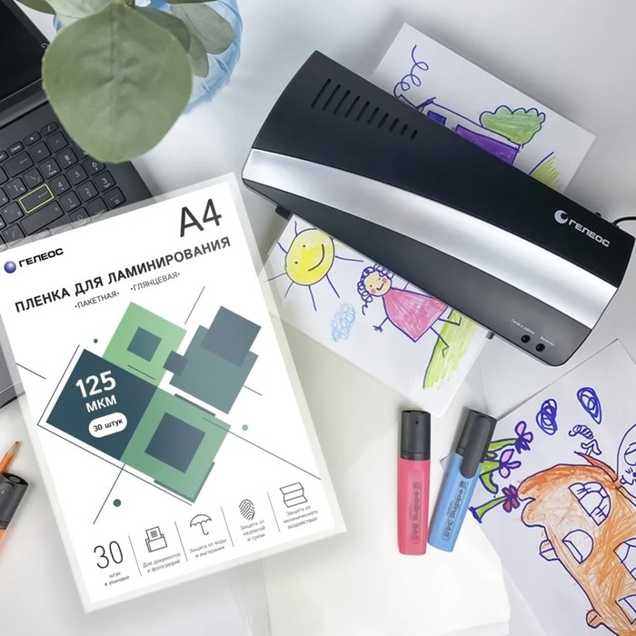 Пленка для ламинирования А4, 125 мкм, 30 штук, глянцевая, Гелеос