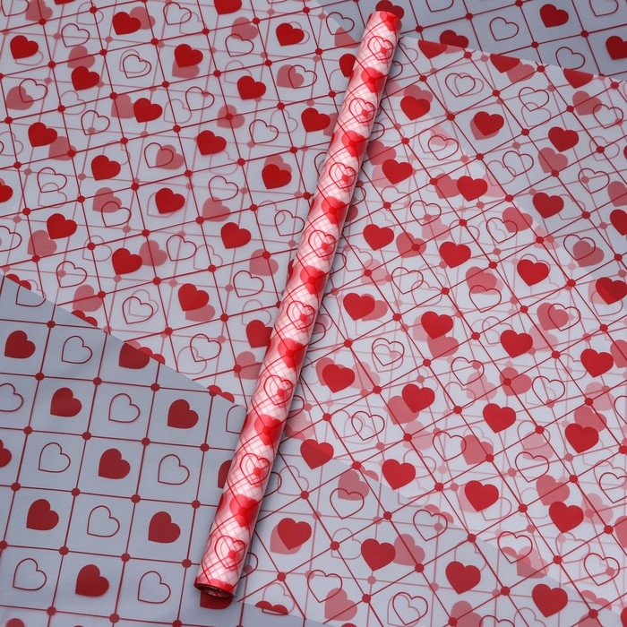 Пленка матовая прозрачная "Сердца", 58 см x 10 м, красный