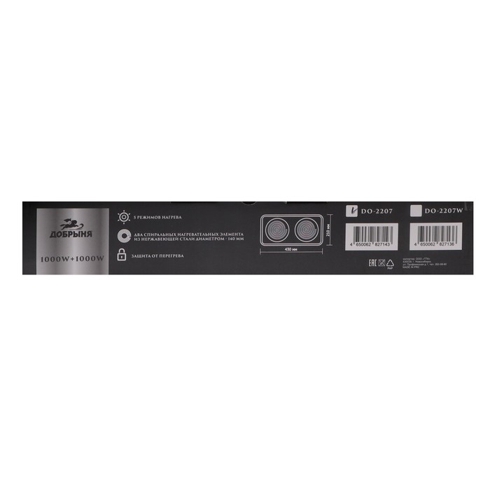 Плитка электрическая "Добрыня" DO-2207, 2000 Вт, 2 конфорки, коричневая