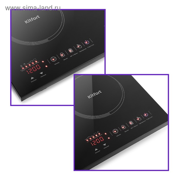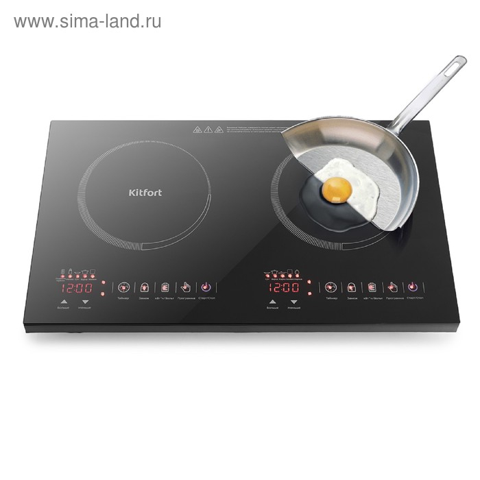 Плитка индукционная Kitfort КТ-105, 2000/2000 Вт, 2 конфорки, 7 программ, сенсор, чёрная