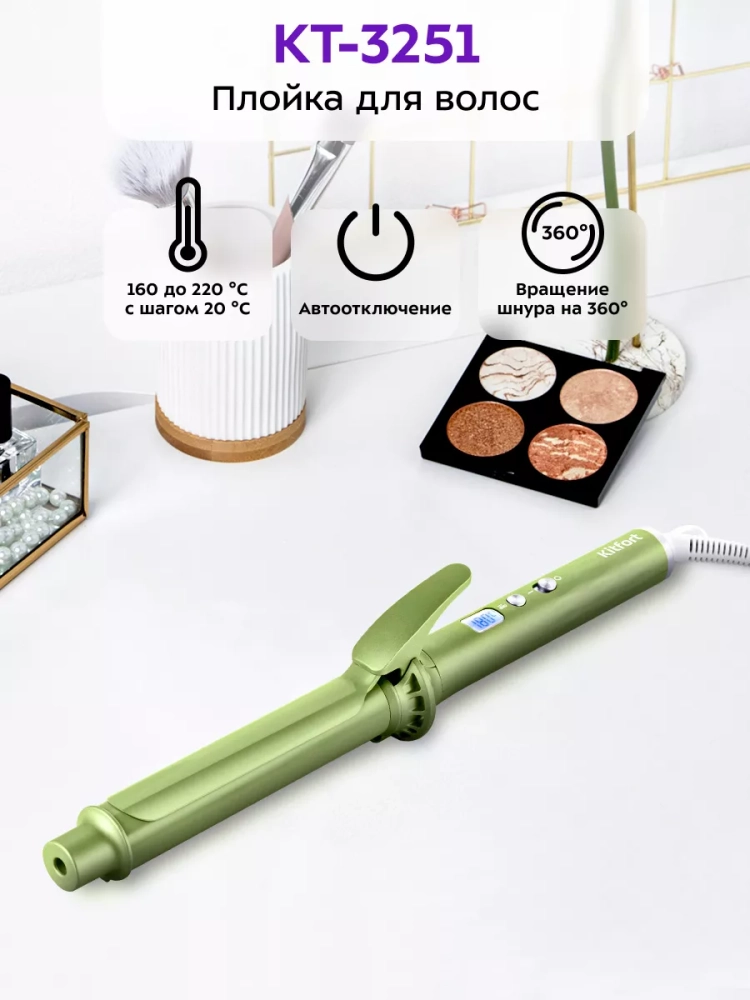 Плойка для волос Kitfort KT-3251 позволит быстро сделать красивые локоны. Керамическое покрытие рабочей поверхности бережно выравнивает структуру волос, делая их гладкими и блестящими, а также снимает статическое электричество.