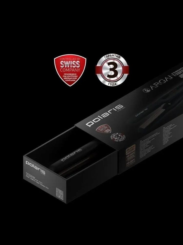 Профессиональный cтайлер Polaris PHSZ 1309TAi Argan Therapy PRO - мастхэв для создания естественного прикорневого объема. Две керамические пластины гофре с турмалиновым покрытием добавят волосам объема и помогут в создании пышной прически. Благодаря ионизации и аргановому маслу в составе пластин стайлер не навредит волосам. В зависимости от типа ваших волос и желаемого результата вы можете регулировать температуру нагрева от 150 до 230 градусов. Удлиненные пластины позволяют создать равномерную укладку даже на длинных волосах. В наборе вы найдете термосумку-коврик, на которой можно оставить нагретый прибор во время укладки. Стайлер оснащен функцией защиты от перегрева и автоотключения через 60 минут, на случай если вы забыли выключить прибор. Шнур длиною 3 метра не перекручивается благодаря шарнирному вращению на 360 градусов. Матовое покрытие Soft Touch делает стайлер приятным на ощупь и не дает скользить в руках.