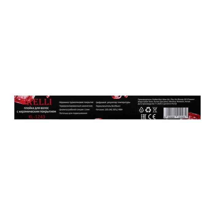 Плойка KELLI KL-1243, 40 Вт, керамическое покрытие, d=11 мм, чёрно-розовая