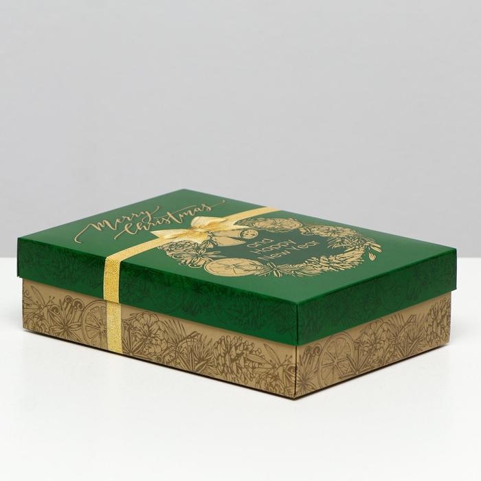 Подарочная коробка "Merry Christmas", зелёная, 21 х 15 х 5,7 см