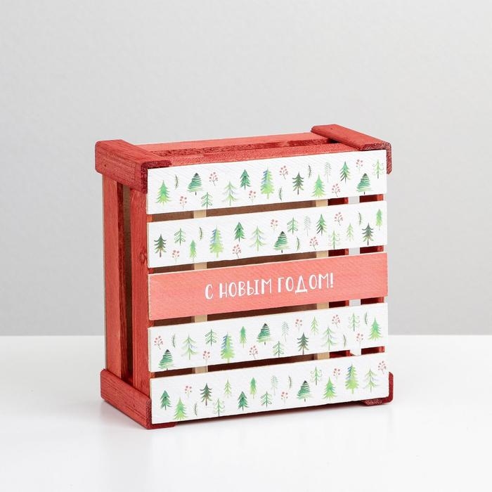 Подарочная коробка - ящик новогодний «С новым годом», деревянный 20 × 20 × 10 см