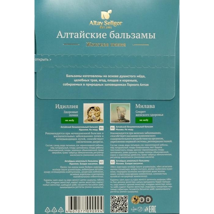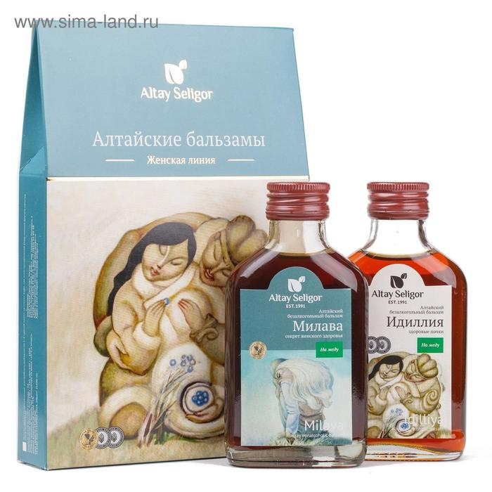 Подарочный набор Altay Seligor, женская линия: бальзам «Идиллия», бальзам «Милава» на меду, 2 флакона по 100 мл
