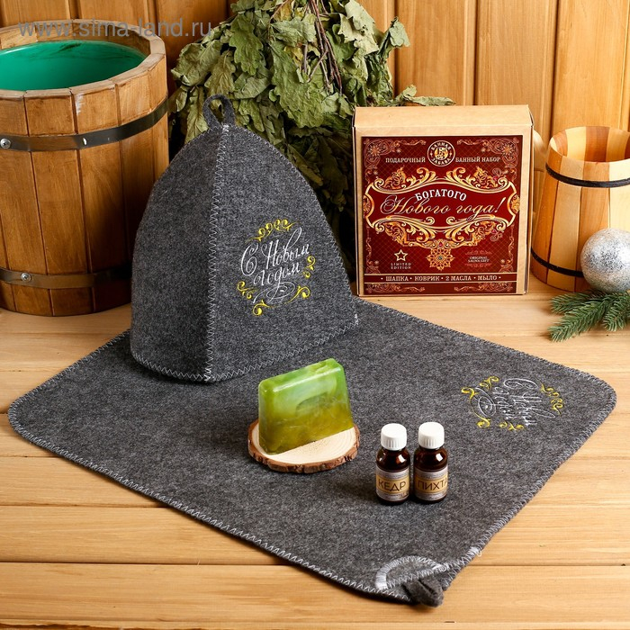 Подарочный набор "Богатого Нового года!": шапка, коврик, 2 масла, мыло