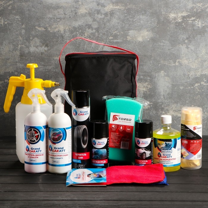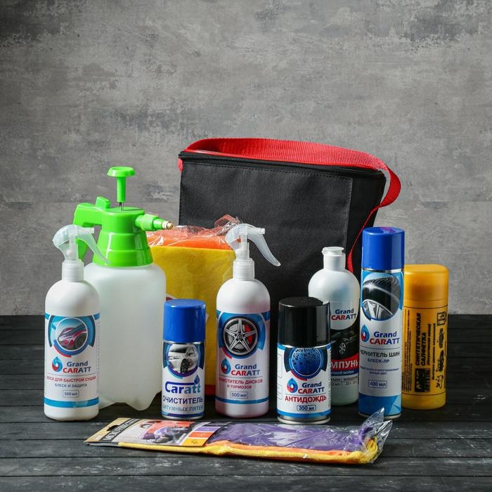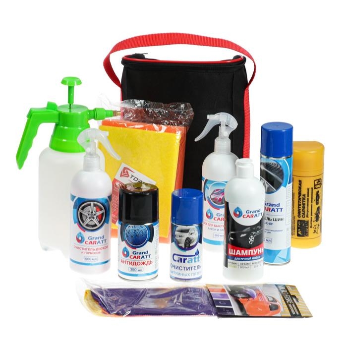 Подарочный набор для ухода и мойки авто Grand Caratt, в сумке, 10 предметов