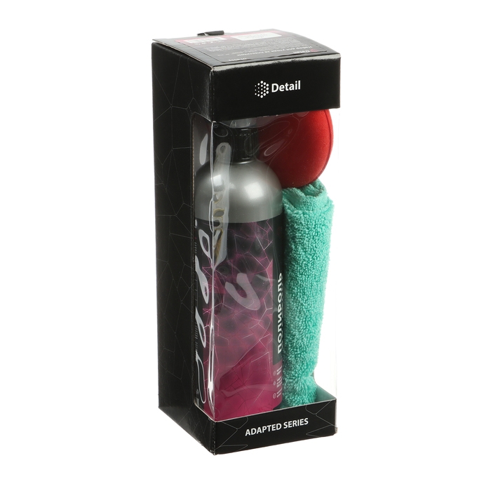 В подарочный набор для ухода за пластиковыми поверхностями автомобиля от компании Grass входят три предмета: полироль пластика Detail, полировальный диск и салфетка из микрофибры.