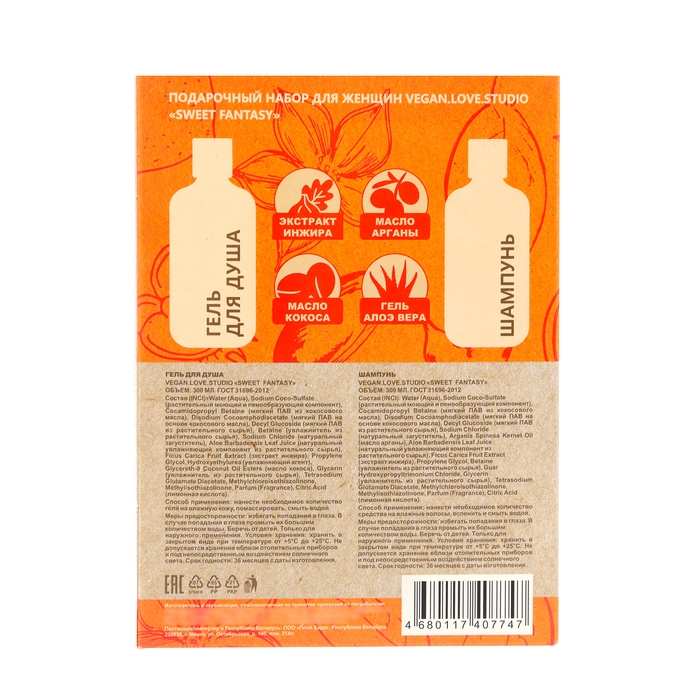 Подарочный набор для женщин VEGAN Love Studio SWEET FANTAZY: гель, 300 мл + шампунь 300 мл