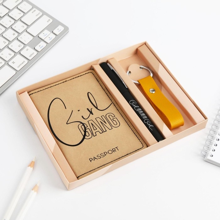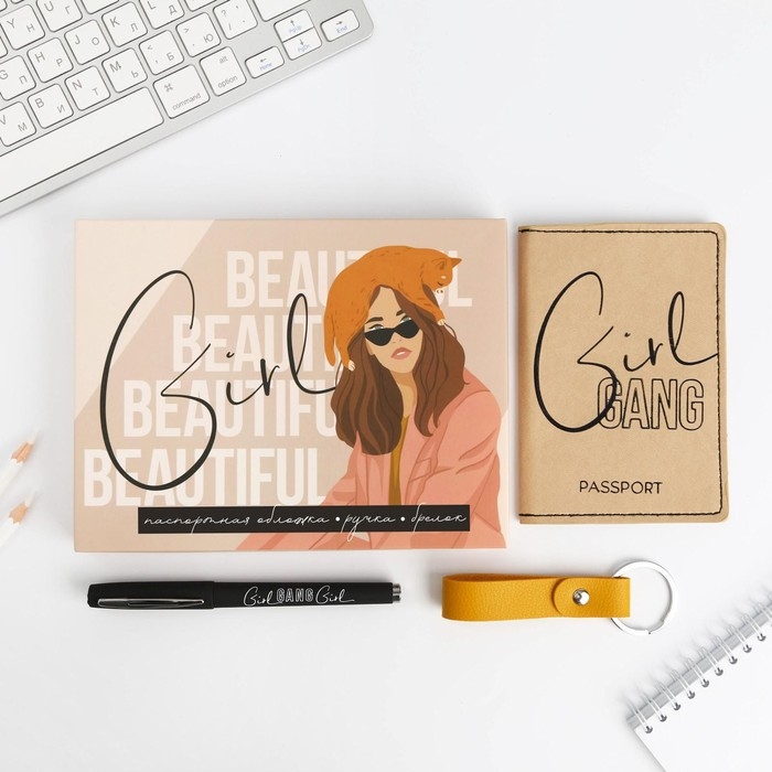 Подарочный набор «Girl»: обложка для паспорта ПВХ, брелок и ручка пластик