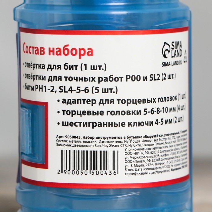 Подарочный набор инструментов в бутылке «Выручай Ка», 15 предметов