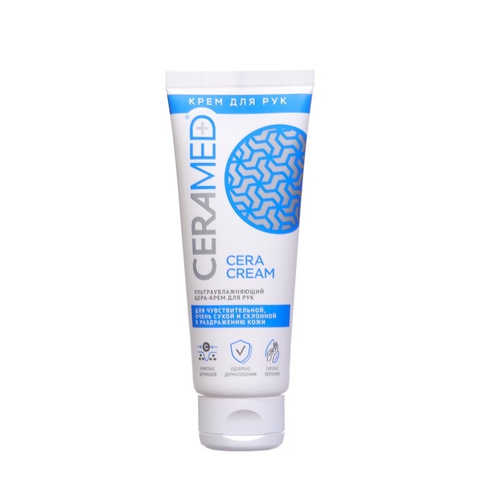 - Ультраувлажняющий цера-крем Ceramed для чувствительной, очень сухой и склонной к раздражению кожи рук.