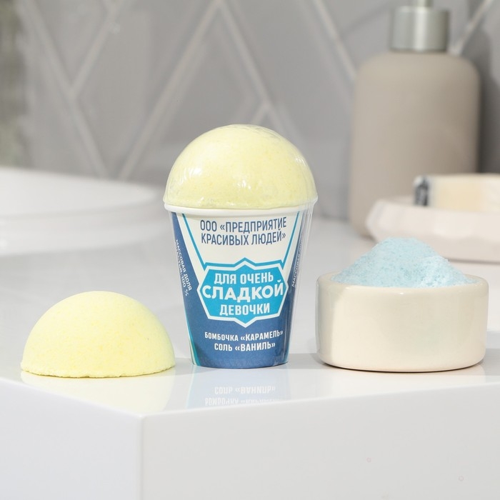 Подарочный набор косметики «Для очень сладкой девочки», соль для ванны 145 г и бомбочка для ванны 60 г, аромат ванили и карамели, BEAUTY FОХ