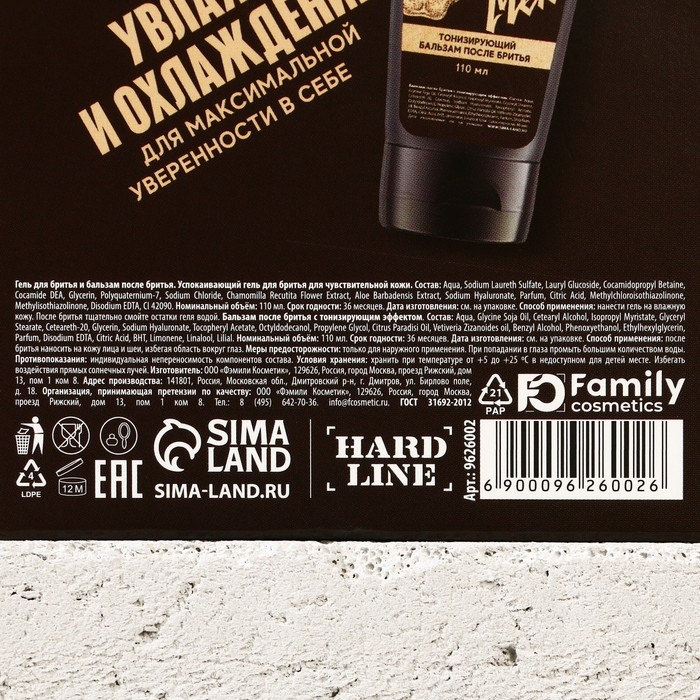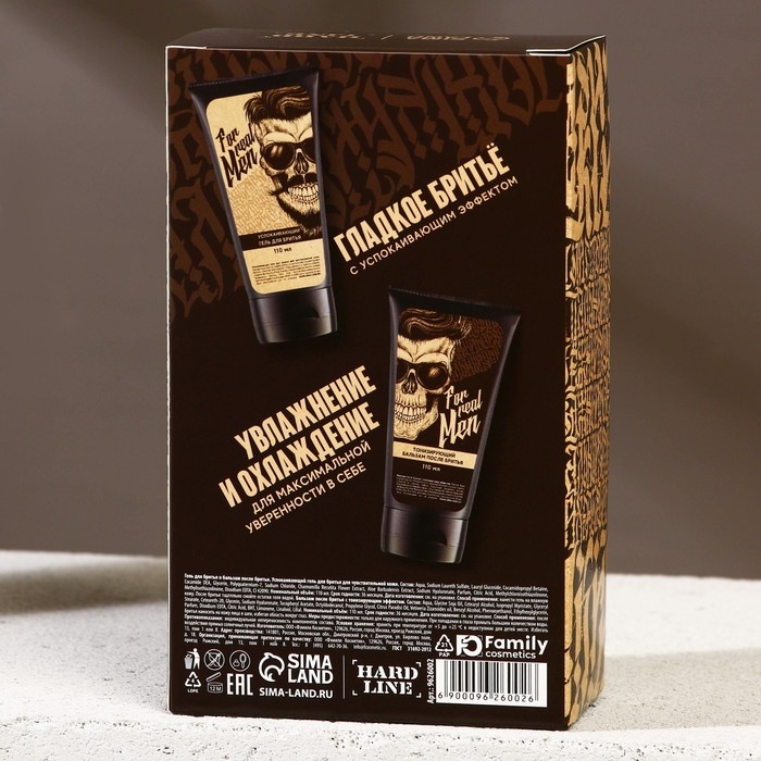 Подарочный набор косметики For real man, гель для бритья 110 мл и бальзам после бритья 110 мл, HARD LINE