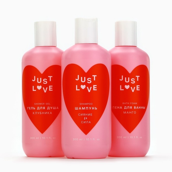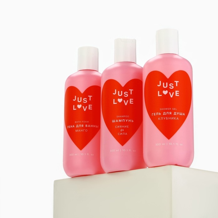 Подарочный набор косметики Just love, шампунь для волос, гель для душа, пена для ванны, 3 х 300 мл, аромат манго и клубники, ЧИСТОЕ СЧАСТЬЕ