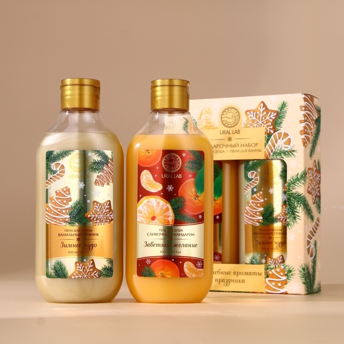Подарочный набор косметики новогодний, гель для душа и пена для ванны, 2 х 300 мл, Новый Год