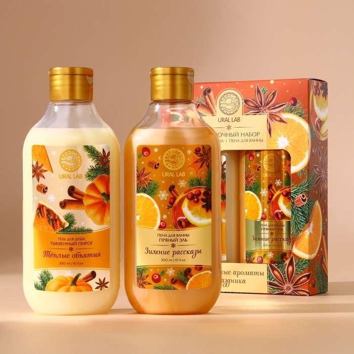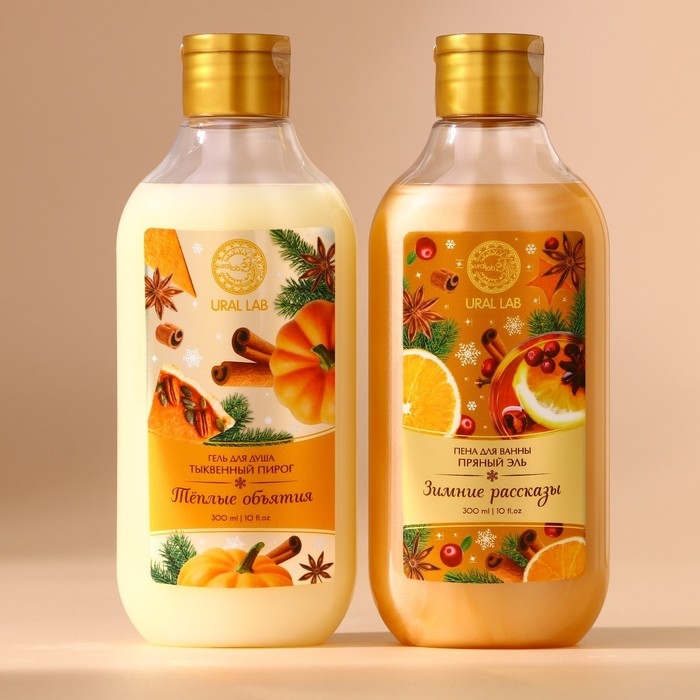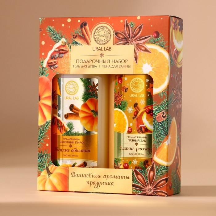 Подарочный набор косметики «Волшебные ароматы», гель для душа и пена для ванны, 2 х 300 мл, аромат тыквенный пирог и пряный эль, Новый Год
