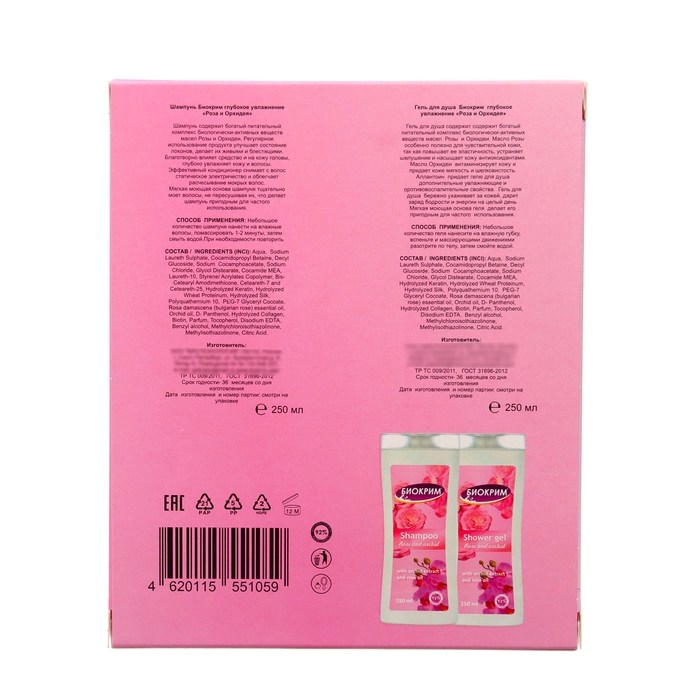 Подарочный набор косметики женский "Роза и Орхидея": шампунь, 250 мл + гель для душа, 250 мл