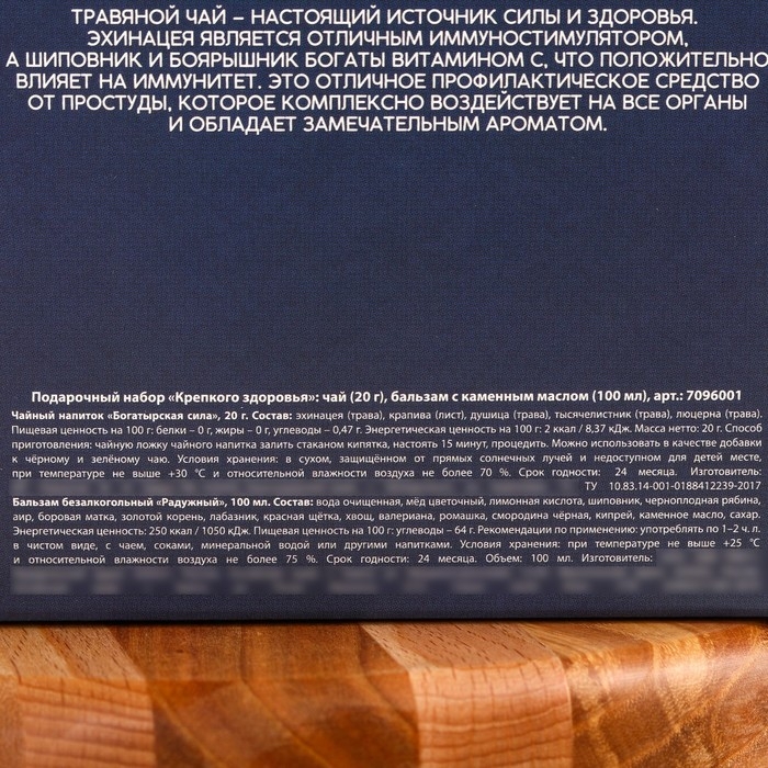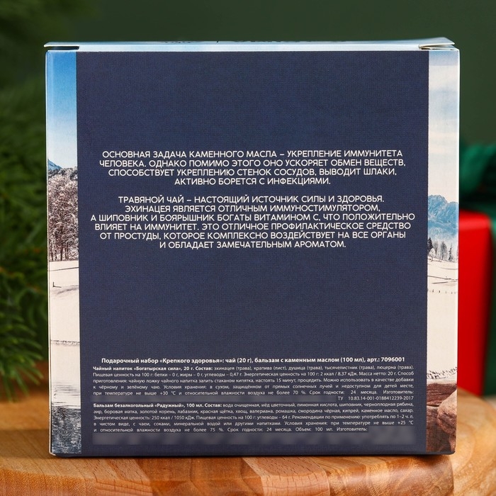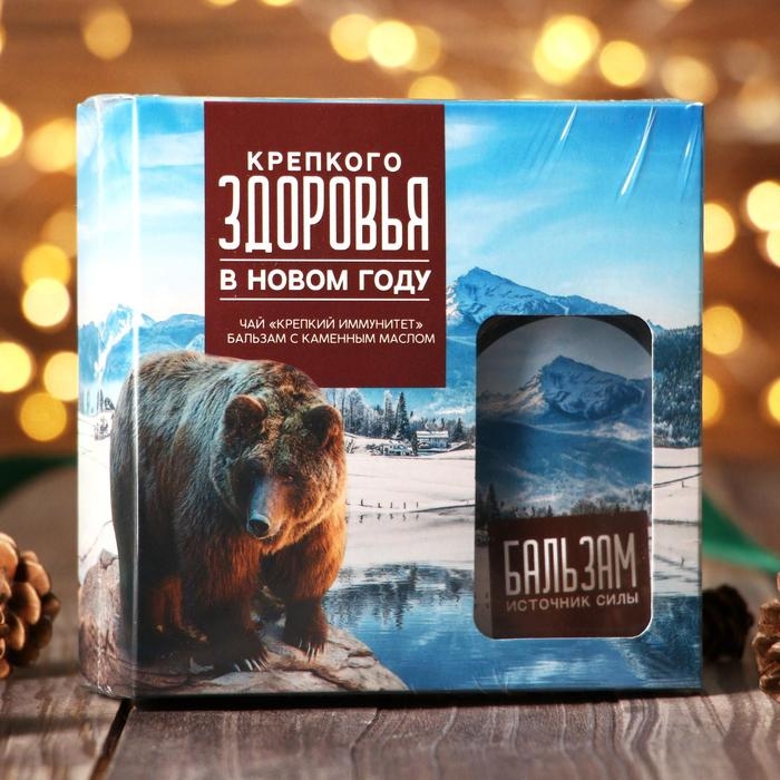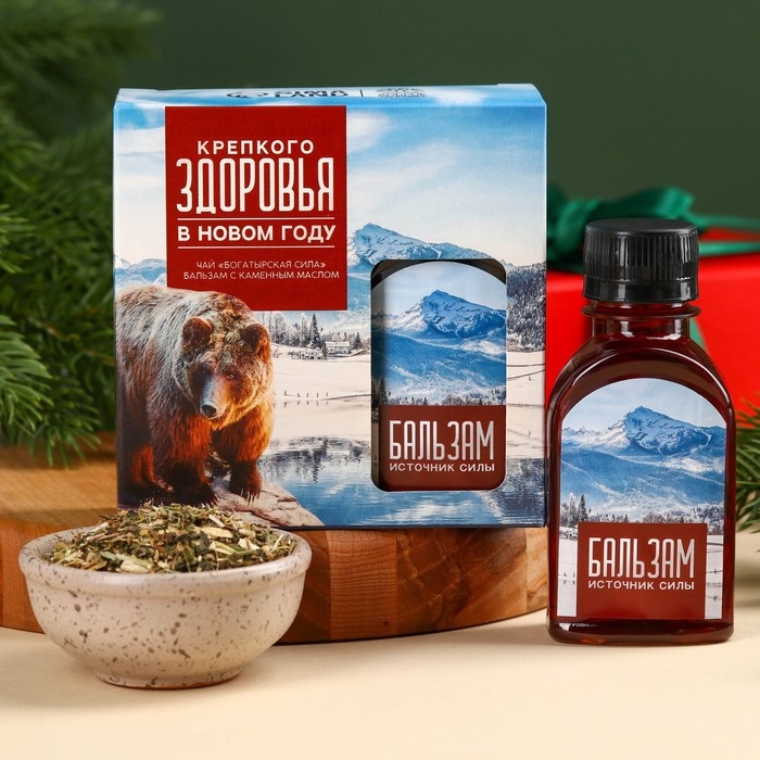 Подарочный набор «Крепкого здоровья»: чай 20 г. и бальзам с каменным маслом 100 мл.