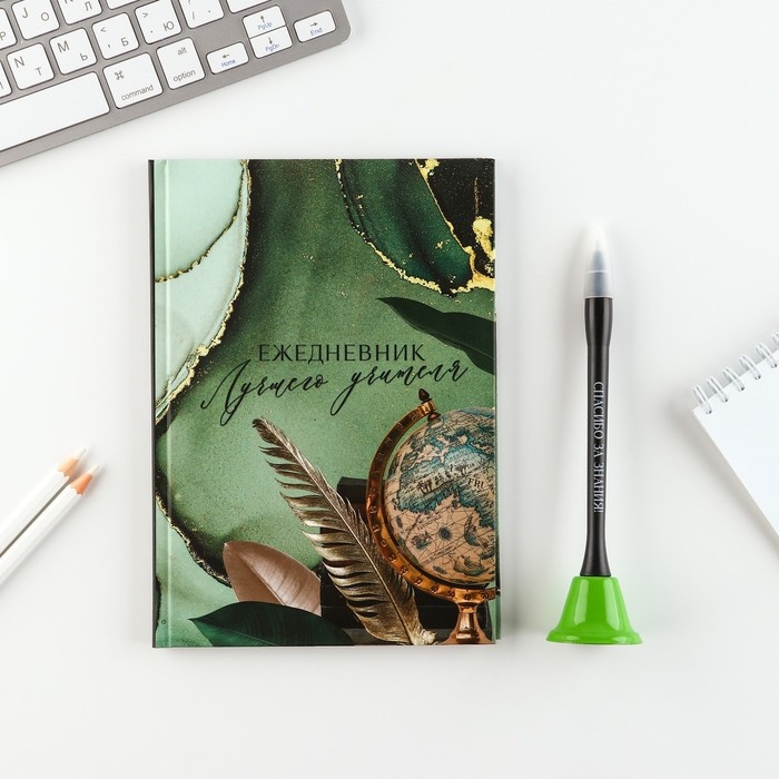 Подарочный набор «Лучшему учителю»: ежедневник и ручка-колокольчик (шариковая, синяя паста, 1 мм)