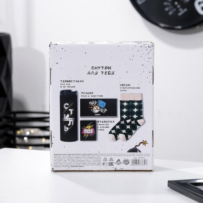 Подарочный набор «Молодость простит», термостакан, планер, открытка, носки