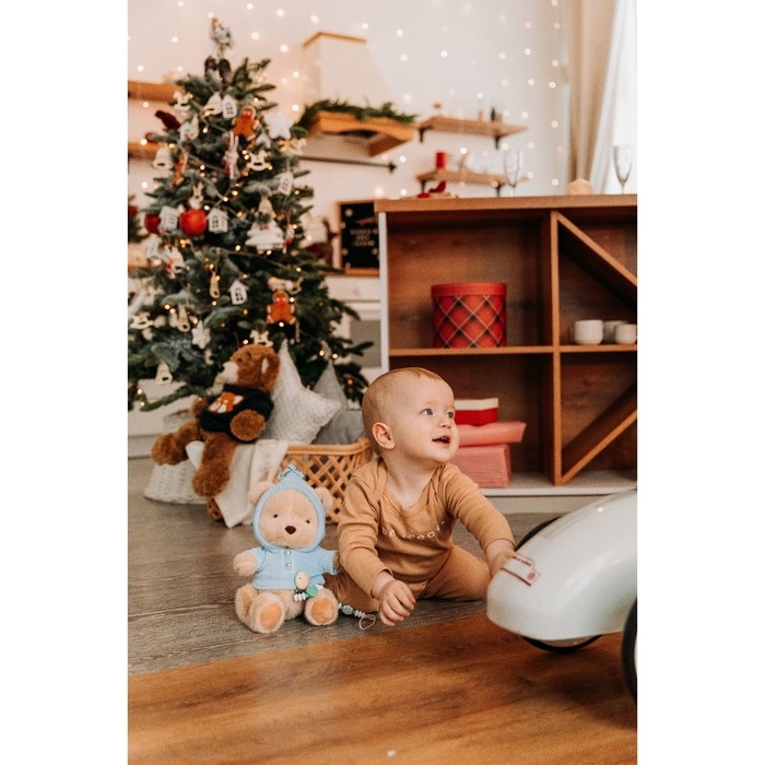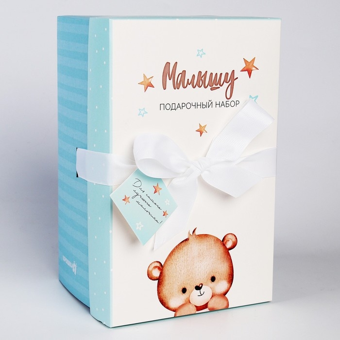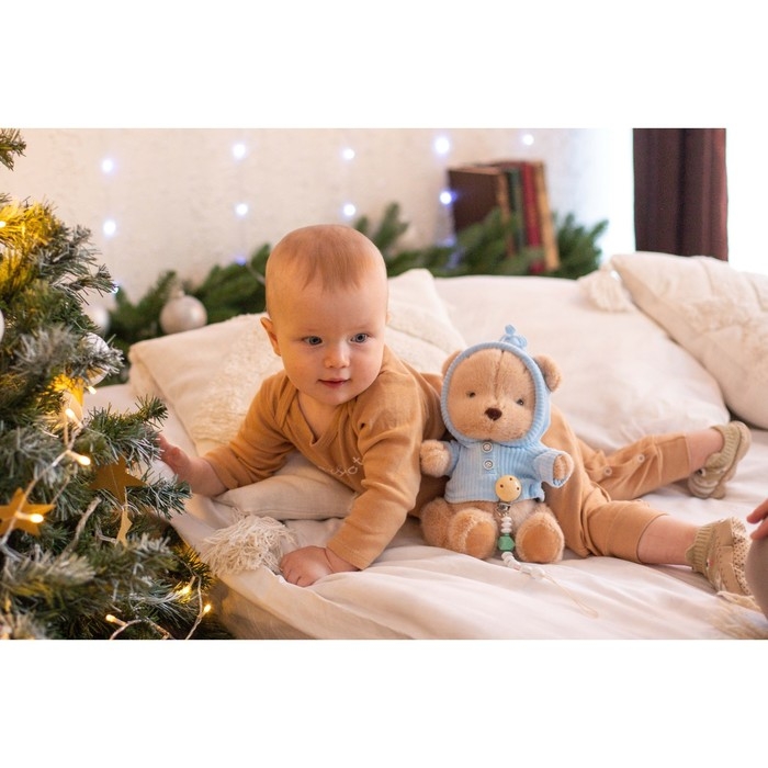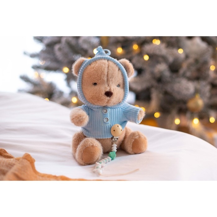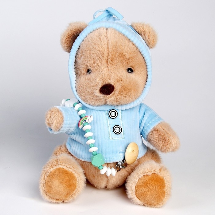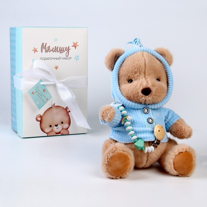 Подарочный набор: мягкая игрушка «Медвежонок» + держатель для пустышки, 23 см, голубой