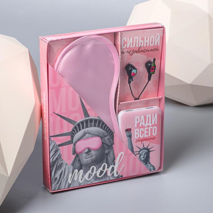 Подарочный набор: наушники, маска для сна и зарядное устройство 5000 mAh м. PB-03 «Mood»,20,5х16,5см.
