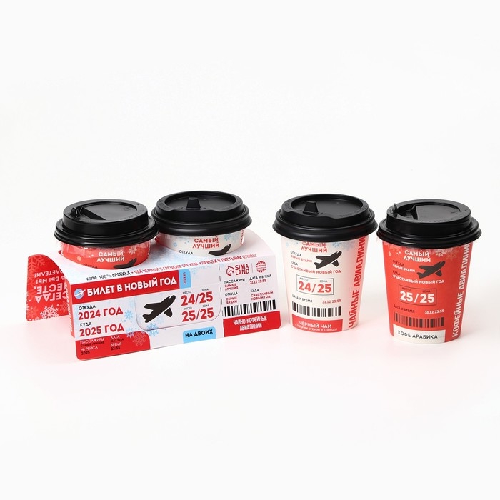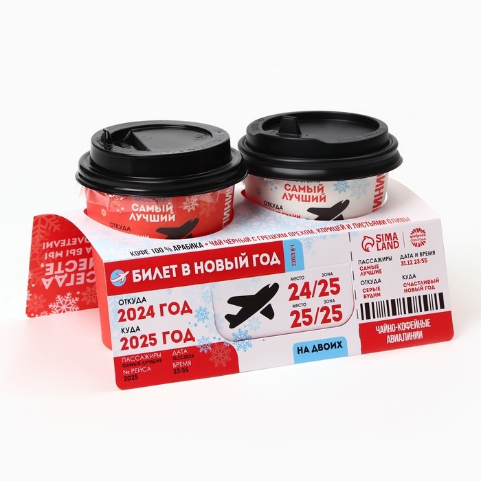 Подарочный набор новогодний «Билет в новый год»: кофе, чай чёрный с грецким орехом и корицей