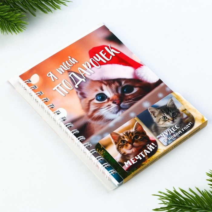 Подарочный набор новогодний, блокнот на спирали А6, 60листов и магнитные закладки 2 шт. «Я твой подарочек»