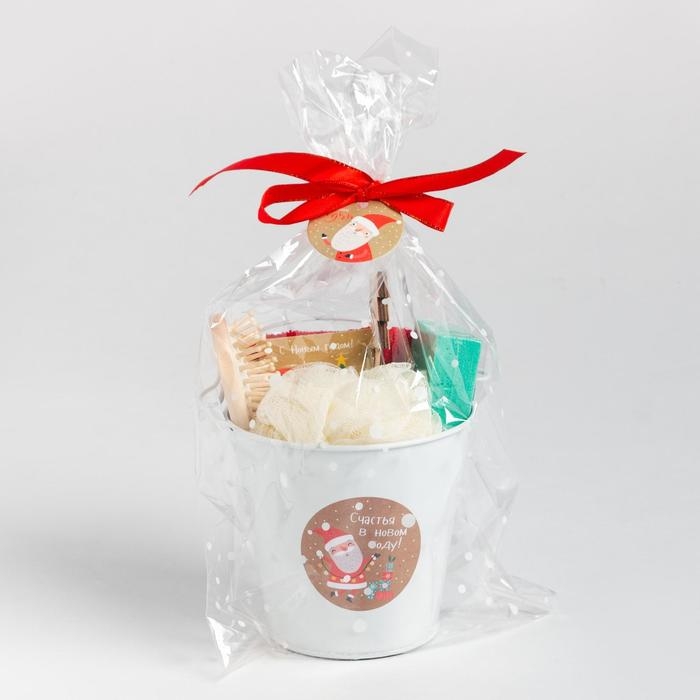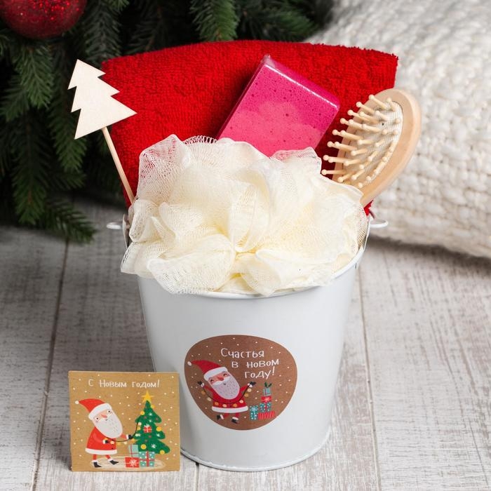 В состав набора входит: Ведёрко, Декор, Мочалка, Открытка, Пемза, Полотенце, Расчёска.