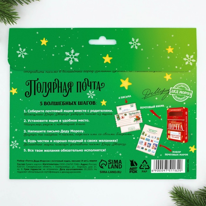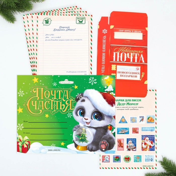 Подарочный набор новогодний, письмо Деду Морозу почтовый ящик, письма (4шт.), марки «Почта счастья»