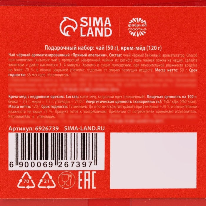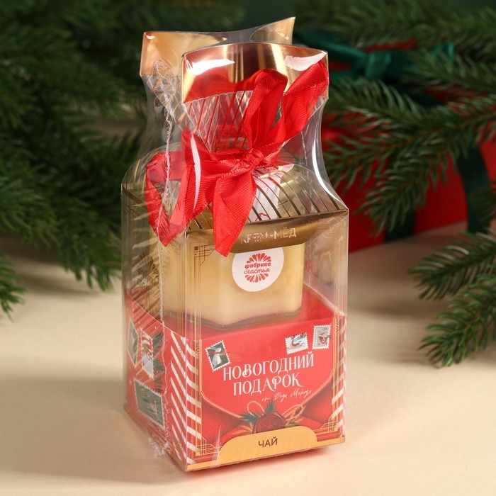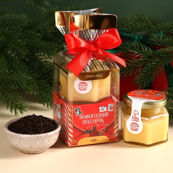Подарочный набор «Новогодний подарок»: чай с апельсином и корицей 50 г., крем-мёд с кедровым орехом, 120 г.