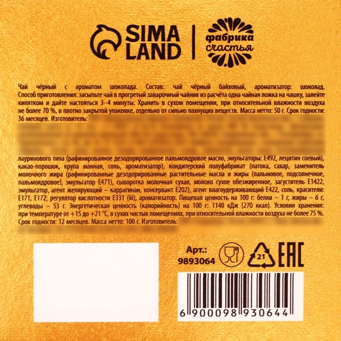 Состав: чай чёрный байховый, ароматизатор: шоколад.